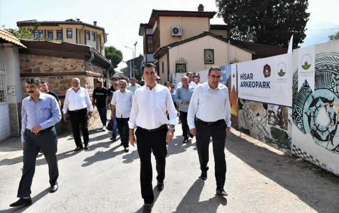 Daha sonra aynı bölgedeki Arkeopark kazı alanına geçen Başkan Dündar ve beraberindekileri, burada geleneksel okçular karşıladı. Roma, Bizans ve Osmanlı dönemlerine ait kalıntıları, Hisar Arkeopark adıyla müzeleştireceklerini kaydeden Başkan Dündar, “Çalışmalarda, Roma, Bizans ve Osmanlı dönemlerine ait su dağıtım sistemleri, Roma dönemine ait tuğla zeminler ve yollar ortaya çıkarıldı. Çıkan kalıntıların da rölöve çizimleri yapılarak Koruma Bölge Kurulu’na sunuldu ve kabul edildi. Şimdi de kalıntıların restorasyonu çalışmalarını sürdürüyoruz. Çalışma tamamlandığında bölge, ortaya çıkartılan taşınır ve taşınmaz eserlerin sergilendiği bir açık hava müzesi olacak. Panorama 1326 Bursa Fetih Müzesi’ndeki sanal ortam burada canlı bir şekilde görülmüş olacak” dedi.