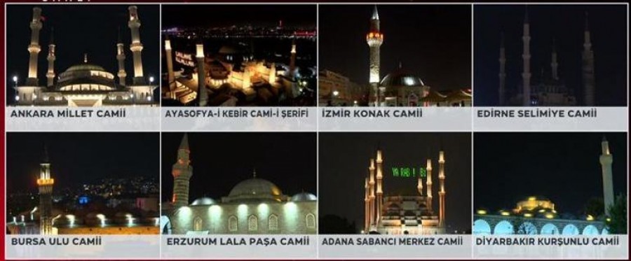 Cami ve minarelerin ışıkları sabah namazına kadar açık kalacak.