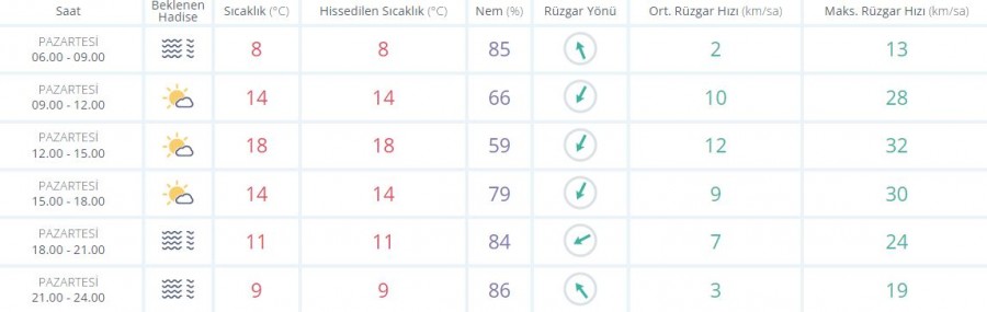Parçalı az bulutlu geçeceği tahmin ediliyor. Sabah ve gece saatlerinde yer yer sis ve pus olayı bekleniyor.