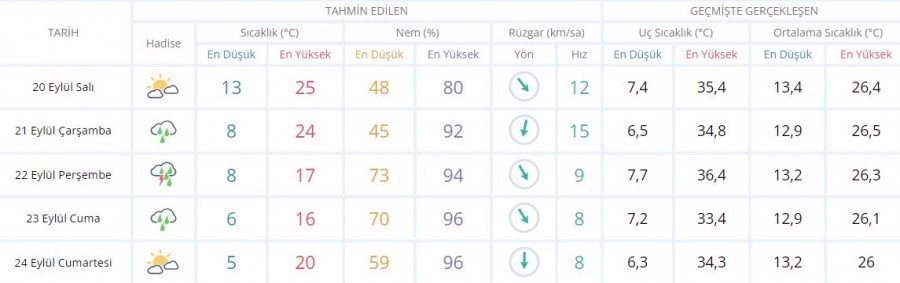 5 GÜNLÜK HAVA TAHMİNİ
