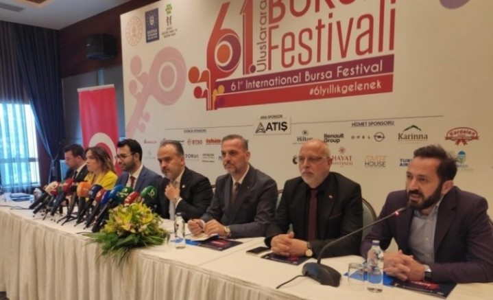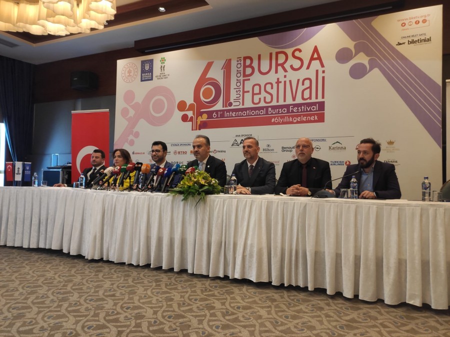Bursa Büyükşehir Belediyesi adına Bursa Kültür Sanat ve Turizm Vakfı (BKSTV) tarafından düzenlenen, Kültür ve Turizm Bakanlığı tarafından da desteklenen 61’inci ‘Uluslararası Bursa Festivali’nin tanıtım toplantısı, Hilton Otel’de yapıldı. Festivalin tanıtım toplantısına Bursa Büyükşehir Belediye Başkanı Alinur Aktaş, BKSTV Başkanı Sadi Etkeser, BKSTV Yönetim Kurulu, sponsor firmaların temsilcileri ve basın mensupları katıldı.