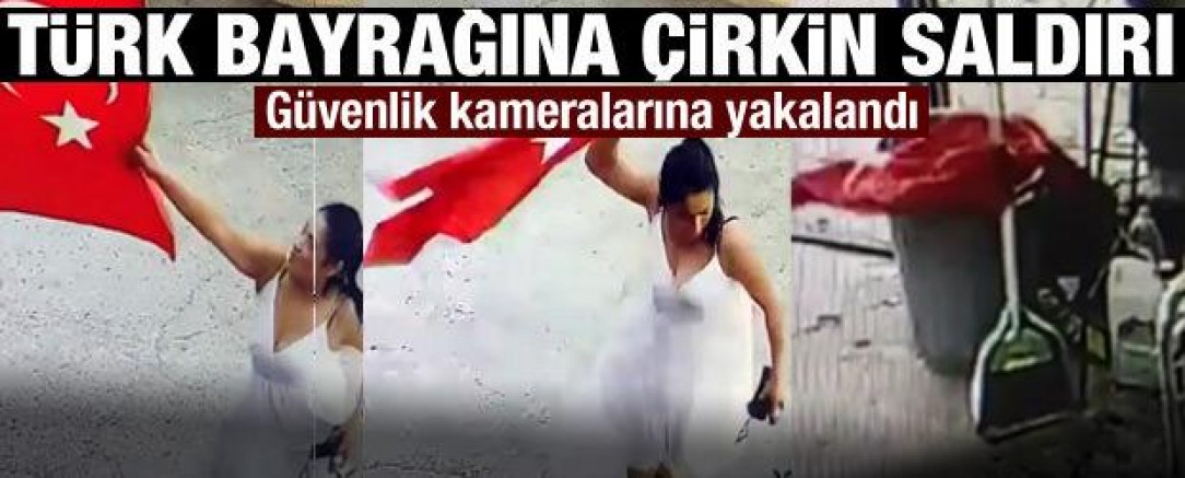 Bu anlar bayrağın asılı olduğu iş yerinin güvenlik kamerasına da anbean yansırken, polisin eşkalini ve kimliğini belirlediği kadının yakalanması için çalışma başlatıldı.