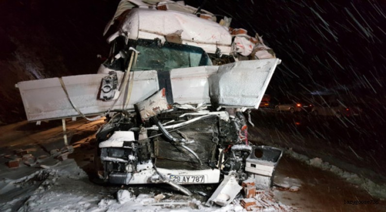Yine aynı mevkide Yücel Ö'nün kullandığı 08 K 0572 plakalı TIR'ın kayması sonucu dorse kısmında bulunan beton bloklar, karşı yönden gelen Taha Furkan Y. yönetimindeki TIR'a çarptı.