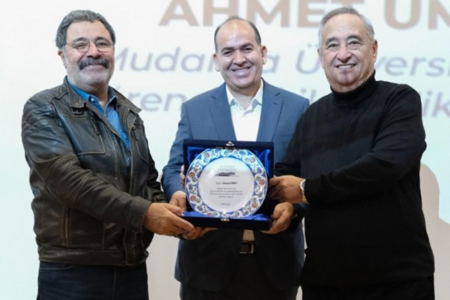 Yazar Ahmet Ümit de, yeni açılan bir üniversitede ilk kez söyleşiye katıldığını dile getirerek bundan büyük memnuniyet duyduğunu ifade etti. Ahmet Ümit daha sonra son çıkan kitabı Bir Aşk Masalı üzerinden 'aşk' konulu bir söyleşi gerçekleştirdi. Kadına yönelik şiddeti eleştiren Ümit'e söyleşi sonrasında Mudanya Üniversitesi Rektör Yardımcısı Prof. Dr. Necmi Gürsakal tarafından teşekkür plaketi verdi.