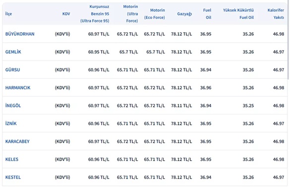 İstanbul Anadolu yakası akaryakıt fiyatları