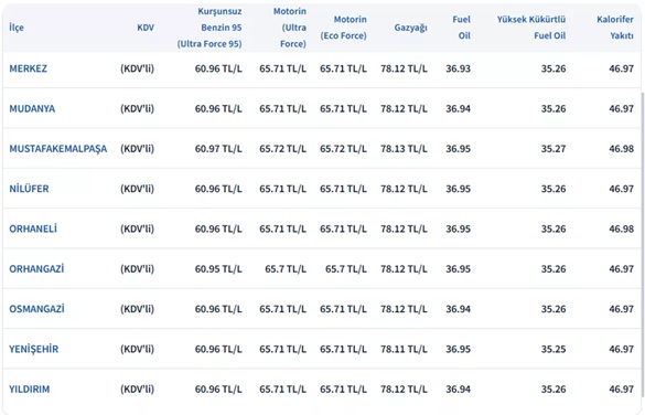 Şehirlerde güncel akaryakıt fiyatlarıysa şöyle şekillendi: