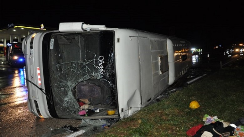 Devrilen araçtaki sürücü ve 22 işçi yaralandı.