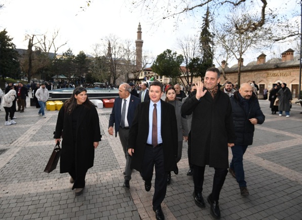 Osmangazi Belediyesi’nin çalışmalarını çok beğendiğini ve yakından takip ettiğini ifade eden Başarır, ziyaretin ardından Kozahan esnafıyla bir araya geldi.