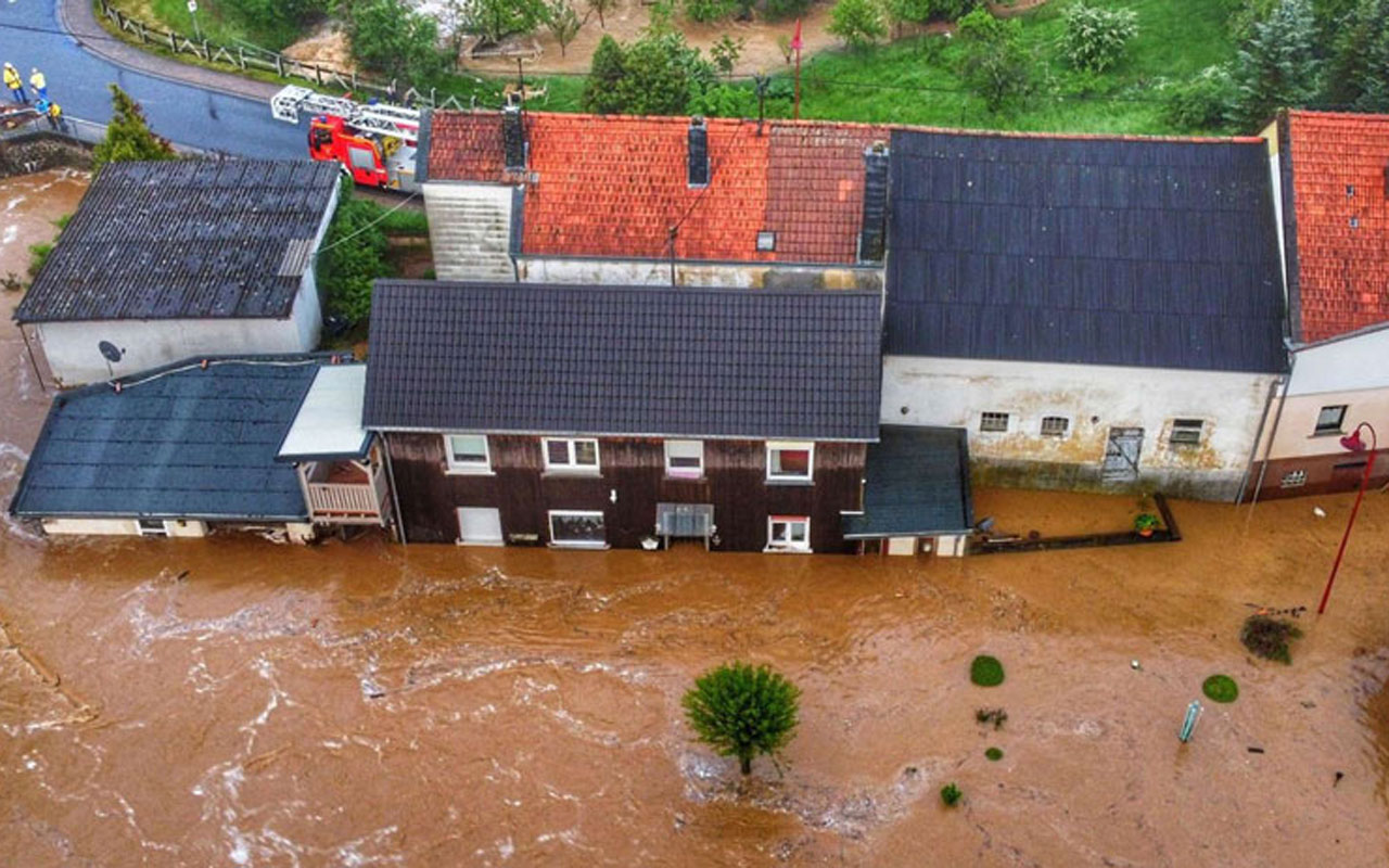 Almanya'nın güney ve batı bölgelerinde metrekareye neredeyse 200 kilogram yağış düştü. Şu ana kadar 2'si itfaiyeci, toplam 7 kişi yaşamını yitirdi. Adenau şehri yakınlarındaki Schuld kasabasında 6 binanın çöktüğü belirtildi.