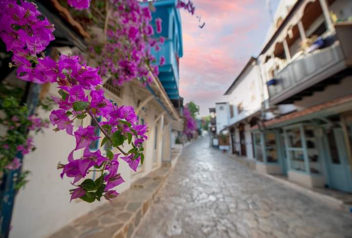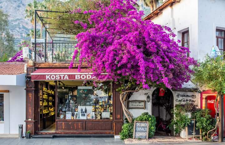 Karşımdaki begonvillerin duvardan denize doğru salınımını , pırıl pırıl güneşi ve denizin ışıltısını almak istiyorum objektife, beceremiyorum...
