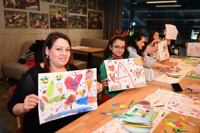 “Bu atölyemizde anneler ve çocukların dünyayı birbirlerinin gözünden nasıl algıladıklarını sanat yoluyla keşfetmelerini amaçlıyoruz. Serbest resim çalışmasıyla ortak bir üretim süreci oluşturuyoruz. Aynı resim, farklı bakış açılarıyla bambaşka anlamlar kazanabiliyor. Çocuğun bir bulut olarak çizdiği figür, annede bir hayvana; çocuğun bir üçgen olarak resmettiği şekil, annede bir dondurmaya dönüşebiliyor. Aslında dünyayı birbirinin gözlerinden nasıl keşfettiklerini görmek için bu çalışmayı yapıyoruz. Amacımız, anne ve çocukları ortak bir paydada buluşturarak birlikte anlamlı bir sanat eseri ortaya çıkarmak.”