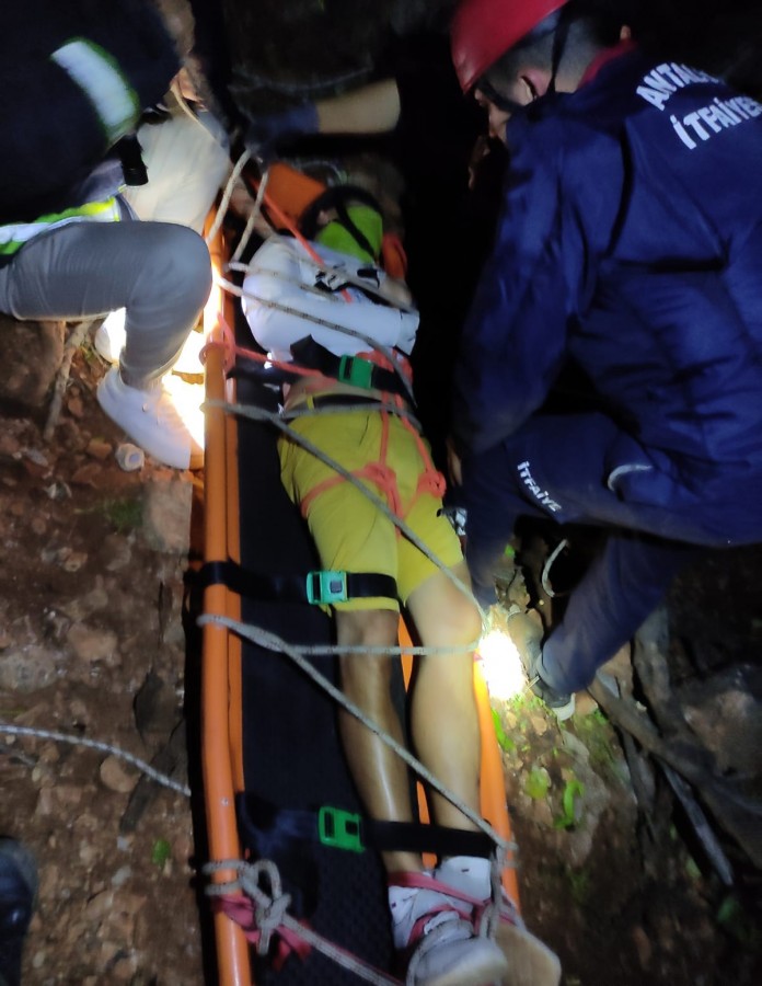 Güvenlik Bot Komutanlığı ve Antalya Büyükşehir Belediyesi itfaiye ekipleri ekipleri sevk edildi.Akşam saatlerinde kurtarma çalışmasına Antalya'dan gelerek katılan bir helikopter ise hava şartları nedeniyle ve uçurum kısmına yanaşamadığından dolayı müdahale edemeden geri döndü. Vücudunun çeşitli yerlerinde kırıklar olduğu tespit edilen Rus turistin kurtarma çalışmaları sürüyor.
