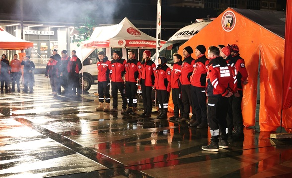 Anma programının sonunda Osmangazi Belediye Başkan Yardımcısı Mutlu Esendemir ve protokol üyeleri, arama kurtarma ekiplerinin çadırlarını ziyaret etti.