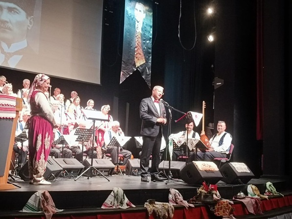 Gecede sahne alan Hafize Beysim Gün Korosu, Ulu Önder Gazi Mustafa Kemal Atatürk’ün sevdiği Rumeli ve Balkan türkülerini seslendirerek dinleyenlere duygusal anlar yaşattı. Gecenin sonunda sahneye çıkarak bağlama çalan Başkan Mustafa Bozbey, salonu dolduranlara büyük sürpriz yaşattı. Koroyla birlikte ‘Yeşil Ördek’ türküsünü de seslendiren Başkan Mustafa Bozbey, dinleyenlerden büyük alkış aldı.