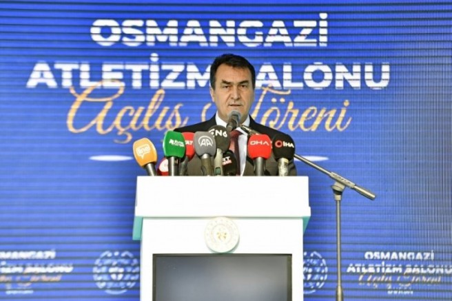 Gençlik ve Spor Bakanı Mehmet Muharrem Kasapoğlu, Türkiye'ye modern bir spor tesisi daha kazandırmanın heyecanını yaşadıklarını söyledi. Osmangazi Belediyesi ile birlikte hayata geçirilen Osmangazi Atletizm Salonu'nun Türkiye'deki en modern iki salondan biri olduğuna dikkat çeken Bakan Kasapoğlu, "Sevgili gençler, bu mekânın sahibi sizlersiniz. Osmangazi Atletizm Salonu Avrupa'nın en nitelikli mekânlarından biri. Atletizmle ilgili olarak haftanın her günü, her saati bu mekânı gönlünüzce kullanın. İnanıyorum ki bu tesisle birlikte sadece Bursa değil, Türkiye açısından da yeni yıldızları yeni şampiyonları yetiştirme adına yeni başarıları yeni ufukları açma adına önemli bir adım.