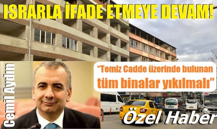 Bursa’da Tahtakale’ye bakan tarafında yeni bir inşaata çok katlı imar izni tartışmalara ve eleştirilere yol açtığını söyleyen Aydın, “Temiz Cadde üzerinde bulunan tüm binalar yıkılmalı” dedi.
