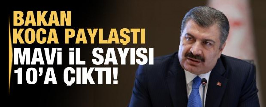 Sağlık Bakanı Fahrettin Koca yaptığı sosyal medya paylaşımında mavi renkli illerin sayısının 10'a yükseldiğini duyurdu.