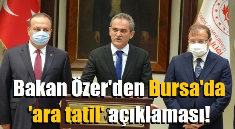 İlk olarak Bursa Valiliğini ziyaret eden Milli Eğitim Bakanı Mahmut Özer, "Bizim eğitim sistemi devasa bir eğitim sistemidir. 18 milyon öğrencinin olduğu, 1,2 milyon öğretmenin olduğu ve eğitim sisteminde 71 bin 320 okulun aktif olarak işlediği bir sistemdir. Bugün itibariyle 850 bin dersliğin içerisinde 2 bin 276 dersliğimiz yüz yüze eğitime ara vermiştir. Dolayısıyla yüz yüze eğitime ara veren derslik sayımız yüzde 1'in çok çok altındadır. Bugün itibariyle tüm derslikleri kapalı olan tek bir okulumuz bulunmamaktadır. Bu süreç içerisinde en büyük avantajımız öğretmenlerimizin aşılanmasıdır. Birinci doz aşı oranı yaklaşık yüzde 93'ken, ikinci doz aşı oranı bugün itibariyle yüzde 88'dir. Bir de aşı olmayın bağışıklık kazanıp antikor oluşturan öğretmenlerimizin oluşturduğu yüzde 5'i de dikkate aldığımız zaman en az 2 doz aşı olmuş ve antikor oluşturmuş öğretmen oranımız yüzde 93 oranındadır. Bu süreçteki en büyük avantajımız Türkiye ortalamasının çok üzerinde hem Avrupa üzerinde öğretmenlerin aşılama oranları üzerinde bir performans gösteren öğretmenlerimizin aşılanma oranları bizleri bugüne getirmiştir" dedi.