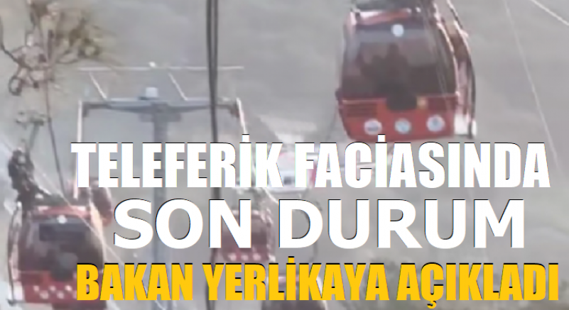 Sosyal medya hesabından açıklama yapan Bakan Yerlikaya teleferik faciasını şu sözlerle özetledi; Teleferikte mahsur kalan vatandaşlarımızı kurtarma çalışmaları aralıksız devam etmektedir.
