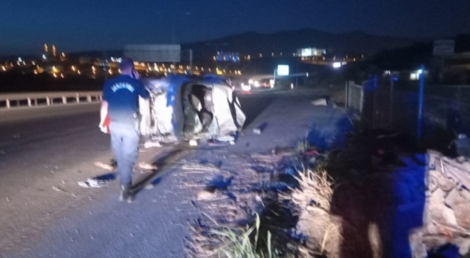 Muhsin C. (35) idaresindeki 34 ZP 1553 plakalı otomobil, Gemlik Serbest Bölge çıkışında yol kenarındaki bariyere çarparak takla attı.
