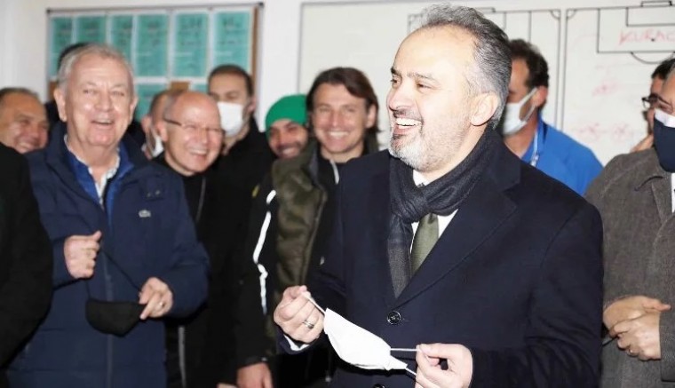 Uzun bir aradan sonra Bursaspor’un Altınordu ile oynadığı maçı tribünden takip eden Bursa Büyükşehir Belediye Başkanı Alinur Aktaş karşılaşmanın ardından soyunma odasında futbolcuları ilk kutlayan isimlerden biri oldu.