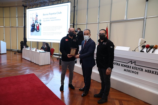 Başkan Aktaş, meclis toplantısında Aralık’ta ayın kurumu olarak Bursa Toyota Club’un belirlendiğini açıkladı. Bursa Toyota Club çatısı altında bir araya gelen otomobil tutkunlarının sosyal sorumluluk projesi kapsamında iki engelli vatandaşa akülü araç hediye ettiğini hatırlatan Başkan Aktaş, “Haftada bir gün sanal ortamda buluşan grup üyeleri, farklı farklı sosyal sorumluluk etkinlikleriyle ihtiyaç sahiplerinin yardımına koşuyor. Duyarlılıkları nedeniyle kendilerine teşekkür ediyoruz” açıklamasında bulundu. Başkan Aktaş, Bursa Toyota Club Başkanı Yasin Altın ve Başkan Yardımcısı Tolga Çevikel’e meclis üyelerinin huzurunda teşekkür plaketi takdim etti.