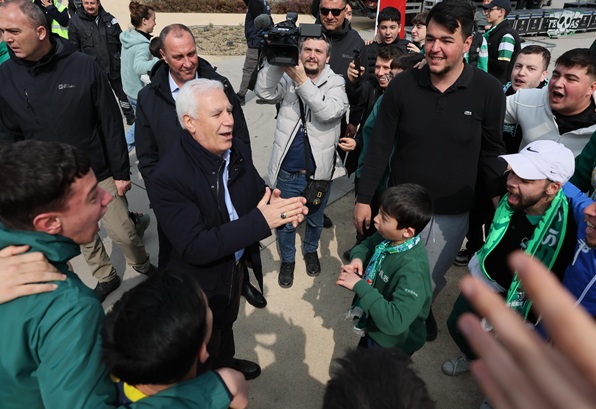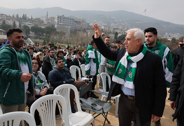 Başkan Bozbey’de Kültürpark Eski Atatürk Stadyumu’nda taraftarlarla birlikte maçın heyecanına ortak olurken, Bursasporlu taraftarlar tarafından tezahüratlarla karşılandı.
