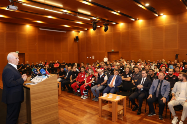 Bursa Büyükşehir Belediye Başkanı Mustafa Bozbey, geçtiğimiz haftalarda yaşanan orman yangınlarının söndürülmesi için gece gündüz demeden mücadele eden Büyükşehir Belediyesi İtfaiye Dairesi Başkanlığı ve AFAD başta olmak üzere kamu kurumlarının, sivil toplum kuruluşlarının, firmaların, derneklerin temsilcilerine, moto kuryerelere ve vatandaşlara teşekkür belgesi verdi.