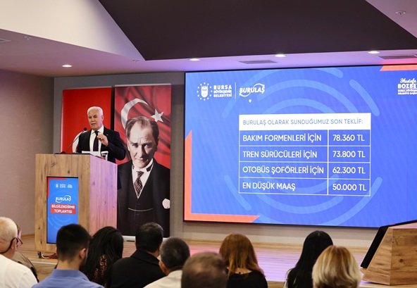 Süreci tutarlı ve olumlu bir şekilde yönetmeye çalıştıklarını anlatan Başkan Bozbey, yapıcı bir tutum sergileyerek emekten, haktan yana bir anlayışla hareket ettiklerini, teklifi imkânların en üst sınırında tuttuklarını söyledi. Yapılan teklifi açıklayan Başkan Bozbey, “En düşük ücret net 50 bin lira olacak. Tren sürücülerimize yaklaşık 73 bin 800 TL civarında, bakım formenlerimize 78.300 TL civarında teklifimiz var. Kurumumuzda asgari ücret alan yok. Otobüs şoförlerinin aldığı ücret düşüktü. Onları biraz daha yukarı çektik. Bu teklifi yaparken ekonomik şartları ve belediyenin mali durumunu da düşünüyoruz. Sonuçta bu benim param değil. Bu milletin parasıdır. 3.3 milyon civarındaki Bursalının parasıyla, 13.800 civarındaki çalışanımıza yaşam standartlarını da yükselterek destek oluyoruz ve destek olmaya devam edeceğiz” ifadelerini kullandı.