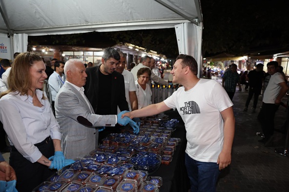 Başkan Bozbey, bu anlamlı gecede vatandaşlara tatlı ikramında bulunarak manevi atmosferi paylaştı.