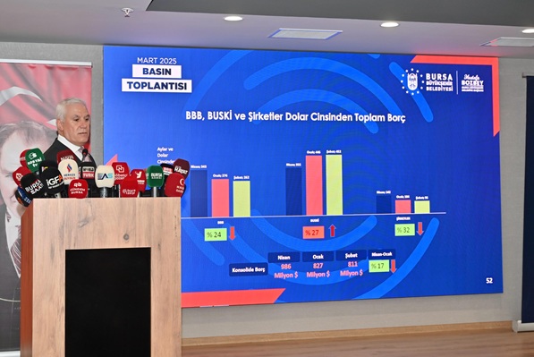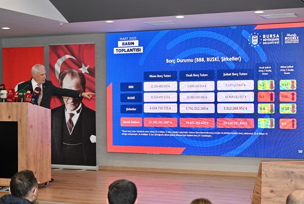 Su kaynaklarını korumak ve geleceğe güvenle taşımak için kararlı olduklarını vurgulayan Başkan Bozbey, sürdürülebilir su yönetimi politikalarını hayata geçirdiklerini ifade ederek, bu mücadelede herkese önemli görevler düştüğünü söyledi. BUSKİ’nin borçları hakkında da bilgi veren Başkan Bozbey, “Büyükşehir’in, BUSKİ’nin ve şirketlerin toplam borçları 29.5 milyar TL. Toplam borç üzerinden baktığımızda 2 milyar 300 milyon TL civarında borcu azalttık. Ancak BUSKİ’nin borcu artıyor. Nisan ayında 11 milyar 554 milyon TL olan borç Şubat ayında 16 milyar 464 milyon TL’ye yükseldi. Son yaşanan olumsuzluklardan dolayı kur 2 TL arttı. Her bir lira artışta BUSKİ’nin borcu 350 milyon TL civarında artıyor. 2 TL artınca 700 milyon TL BUSKİ’nin borcu yükseldi. Yüzde 75’i dövizli borç. Konsolide borçlara baktığımızda Nisan ayında 986 milyon dolardı, Şubat ayında 811 milyon dolara indirdik. Bunları tasarrufla, iyi bir mali disiplin uygulayarak, verimliliği artırarak başardık. BUSKİ’nin iç borcu 1 milyardan 896 milyon TL’ye düşerken, dış borcu 8 milyar 156 milyondan 13 milyar 488 milyona yükseldi.” dedi.
