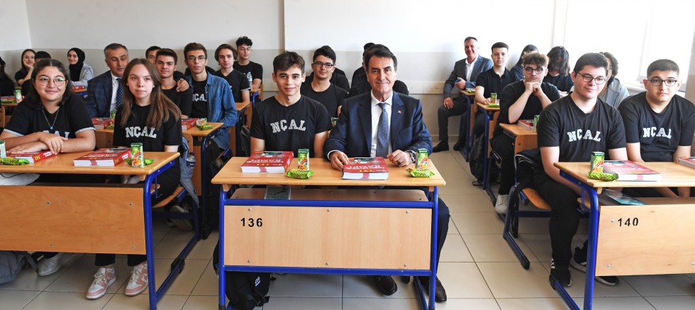 Başkan Dündar ayrıca, ziyaret ettiği lise son sınıf öğrencilerine, 2 bin 500 adet üniversiteye hazırlık yardımcı kitap seti hediye etti.