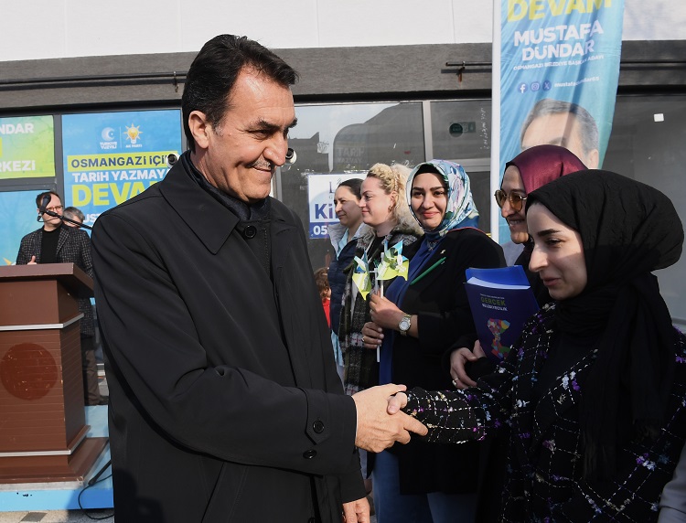 Vatandaşların yoğun katılımıyla yapılan seçim irtibat merkezi açılışında konuşan Osmangazi Belediye Başkanı ve Cumhur İttifakı Adayı Mustafa Dündar, “Bursa’nın örnek mahalle ve semtindeyiz. Türkiye’nin kentsel dönüşümü örnek aldığı bir bölgedeyiz. 2009 yılında bizler bu bölgede çalışmaya başladığımızda bu sonucun ortaya çıkacağı kimse tarafından düşünülmüyordu. Cumhurbaşkanımızın ortaya koyduğu zemin artı 5 kat uygulamasını metropol kentlerde tek uygulandığı yer Osmangazi ilçesi Çiftehavuzlar ve Fatih Mahalleleri, bugün seçim ofisini açtığımız bina ise bu bölgede başlattığımız kentsel dönüşüm etaplarının sekizincisi. Yeni dönemde bu çalışmalarımızı sürdüreceğiz. Soğanlı Kentsel Dönüşümü’nde 8 etabı bitirdik. Bizler Osmangazi’de 75 bin sağlam konut inşa ettik. Bu 300 bin kişilik bir şehir demektir. Bizler inşa edilmiş olan bu konutlarla Bursa’daki insanlarımızı kentsel dönüyüm vasıtasıyla sağlam konutlarda oturmasına teşvik ederek sağladık. İnşallah 31 Mart’ta vatandaşlarımızın vereceği destekle yeniden seçilir göreve devam edersek, 11 farklı lokasyon belirledik. Bu lokasyonlarda çalışmalarımızı sürdüreceğiz.” dedi.