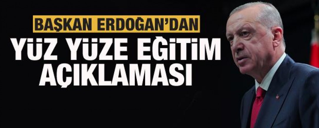 Yüz yüze eğitimle ilgili tartışmalara değinen Erdoğan, "Okullar açık mı kalacak kapanacak mı tartışması artık sona ermelidir. Okullardaki yüz yüze eğitim-öğretim kesinlikle devam edecektir." dedi.