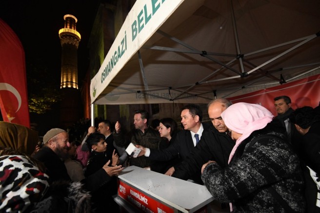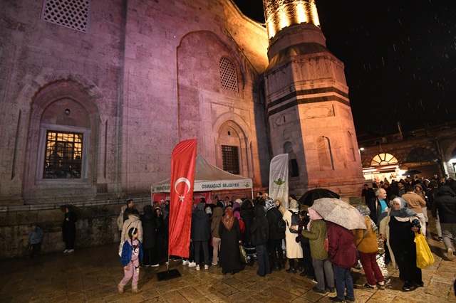 Üç ayların başlangıcını müjdeleyen Regaip Kandili sebebiyle Bursa Ulucami avlusunda vatandaşlarla bir araya gelen Osmangazi Belediye Başkanı Erkan Aydın, yatsı namazı çıkışında Bursalı vatandaşlara kandil simidi ikramında bulundu. Programa Osmangazi Belediye Başkanı Erkan Aydın’ın yanı sıra CHP Osmangazi İlçe Başkanı Raşit Gürbüz, meclis üyeleri ve vatandaşlar katıldı. Kandil simidi ikramında bulunduğu vatandaşların kandillerini tek tek kutlayan Başkan Aydın’a vatandaşlar ikramından dolayı teşekkür etti.