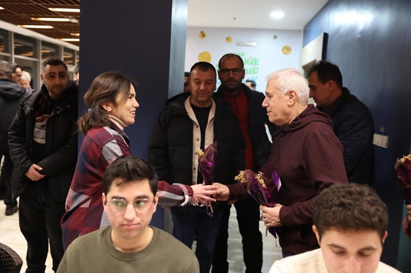 Programın sonunda Başkan Mustafa Bozbey, 8 Mart Dünya Kadınlar Günü dolayısıyla kız öğrencilere de çiçek hediye etti.