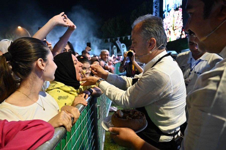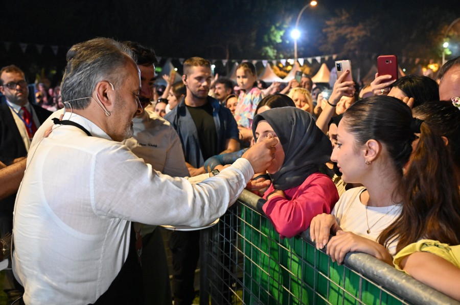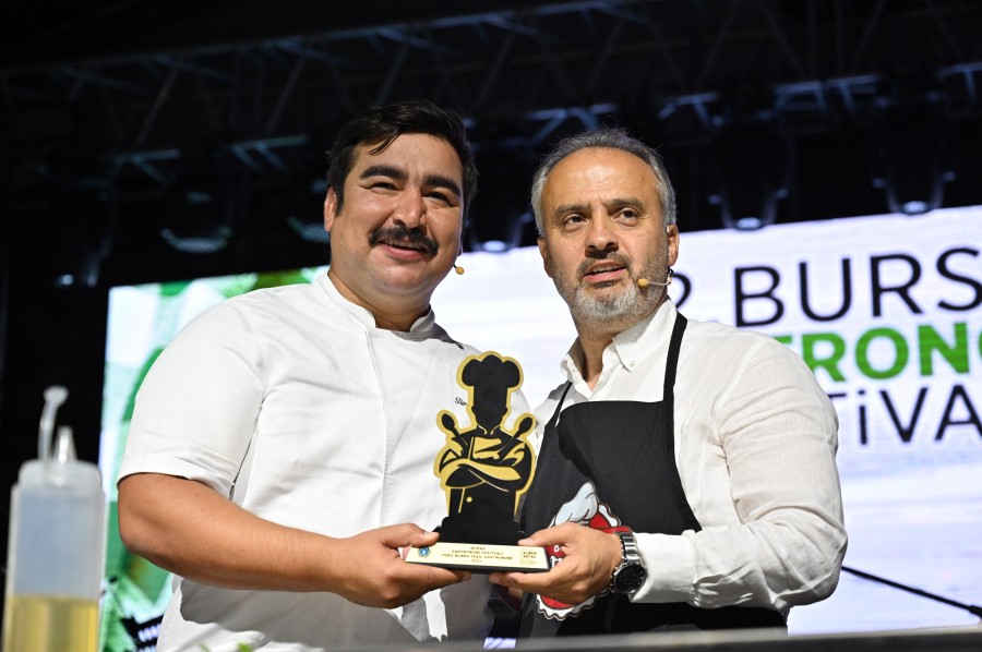 Hazırladığı yemekle hem ünlü Şef Türev Uludağ'dan hem de yemeğin tadına bakan vatandaşlardan tam not alan Başkan Aktaş, "Evet Bursa bir sanayi şehri. Kimse bunu es geçiyoruz gibi bir algıya düşmesin. Ama Bursa aynı zamanda farklı medeniyetlere ev sahipliği yapmış, Osmanlı'nın ilk başkenti olmuş bir turizm şehri. Turizmi tetikleyen en önemli unsur da gastronomi. Bazı serzenişler oluyor. 'Cağ dönerinin, Urfa kebabının Bursa ile ne alakası var' diye. Bütün Anadolu burada. Herkes buraya kültürüyle geliyor. Bursa aslında Türkiye gastronomi mozaiği. Keşke 20- 30 yıldır yapıyor olsaydı. Bana göre meydandaki kalabalık her şeyi söylüyor. Bursa ayrıca sadece 1 gün değil, 365 gün gastronomi şehri. Bursa'nın her lokantasında, her restoranında bu lezzetleri bulabilirsiniz. Bursa gastronomisi sadece döner kebabından, kestaneden ibaret değil. Muradiye çorbası var, pideli köfte, cantık, tahanlı var. 30 tane coğrafi işaretli ürünümüz var, 5 tane daha almak üzereyiz. Ben festivalimize değer katan tüm şeflerimize ve bizi yalnız bırakmayan tüm vatandaşlarımıza teşekkür ediyorum" diye konuştu.