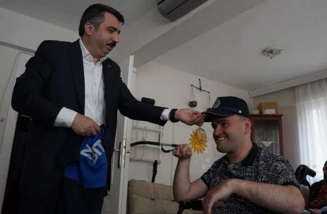 Yıldırım Belediye Başkanı Oktay Yılmaz, Ramazan Bayramı münasebetiyle Piremir Mahallesi’nde oturan Yıldırım’ın özel vatandaşlarından Önder Özkaya’nın evini ziyaret etti. Hane halkının bayramını tebrik eden Belediye Başkanı Oktay Yılmaz, zabıta hayranı olan Özkaya’ya bayram dolayısıyla zabıta üniforması hediye etti. Yıldırım’ın yeni zabıta memuru Özkaya’yı tebrik edip görevinde başarılar dileyen Başkan Oktay Yılmaz, “İlçemizde yaşayan engelli vatandaşlarımızın engelsiz bir hayat sürmesini sağlamak için büyük gayret gösteriyoruz. Kendilerini evlerinde ziyaret ederek onlarla sohbet ediyor, özel günlerinde yanlarında bulunarak yalnız olmadıklarını gösteriyoruz. İsteklerine anında cevap vermeye çalışıyoruz. Ramazan Bayramı dolayısıyla bizleri evine davet eden Önder kardeşimizin hanesine misafir olduk, kendisi ve kıymetli ailesiyle bayramlaştık. Zabıtaları çok seven kardeşimize zabıta üniforması hediye ettik. Bundan sonra mahalle Önder’e emanet” dedi. Öte yandan mutluluğu gözlerinden okunan Önder Özkaya ve ailesi, anlamlı hediyesinden dolayı Başkan Oktay Yılmaz’a teşekkür etti. Başkan Yılmaz, üniformasını giyen Önder Özkaya ile hatıra karesi çektirdi.