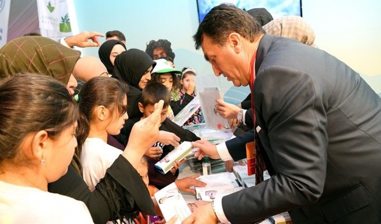 Başkan Dündar, standı ziyaret eden gençlere kırtasiye seti ve Osmangazi Belediyesi’nin süreli yayınlarından hediye etti.