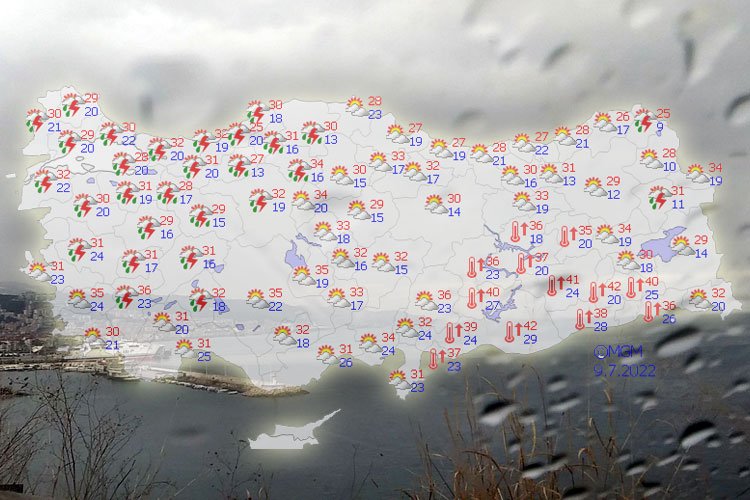 Meteoroloji Genel Müdürlüğü'nden yapılan uyarıya göre bayramın birinci günü olan 9 Temmuz Cumartesi günü; Bolu, Karabük, Düzce ve Kastamonu’nun iç kesimleri ile Ankara’nın merkezi ile kuzey ve batısı, Çankırı, Eskişehir, Kütahya çevreleri, Bilecik ve Bursa’nın güneydoğusunda kuvvetli yağış beklendiği açıklandı.