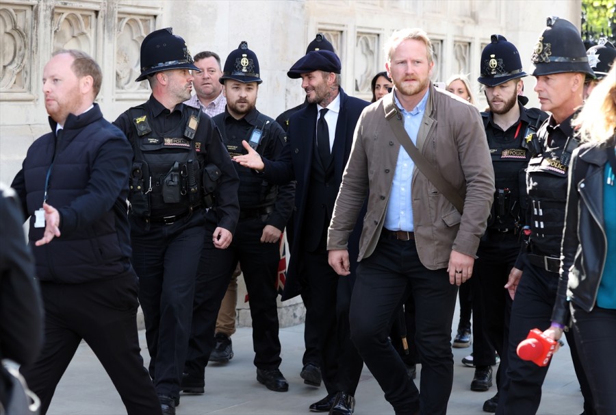 David Beckham, parlamento binası içerisindeki Westminster Hall'de tutulan Kraliçe'nin tabutunu ziyaret ettikten sonra alandan ayrıldı.
