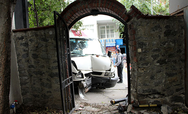 Freni patlayan minibüsün doğalgaz kutusuna çarpması güvenlik kamerası tarafından kaydedildi. Görüntülerde, bir kişinin yoldan geçtiği sırada hızla gelen minibüsün bina girişindeki doğalgaz kutusuna çarpması görülüyor. Saniyelerle kazadan kurtulan kişi, olayın şokunu atlattıktan sonra şoföre yardım ediyor.