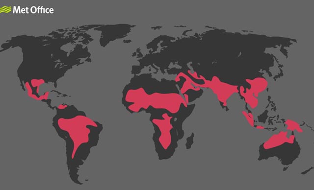 İngiltere Meteoroloji Kurumu’nun değerlendirmesine göre, sıcaklıktaki 2 santigratlık bir artış, bir milyar insanı risk altına alacak. Kurumdan yapılan açıklamada, bu riskin can kayıplarını da içerebileceği vurgulandı. MET Office’te yayınlanan haritada, söz konusu senaryoda Afrika kıtasının merkezi, Güney Amerika, Avustralya’nın kuzeyi ve Tayland, Vietnam, Malezya gibi ülkelerin de risk altına gireceği öngörülüyor. Öte yandan araştırmada, 4 santigratlık bir artışın, dünya nüfusunun yarısını risk altına aldığı belirtildi.