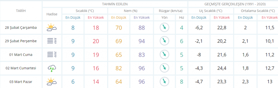 5 GÜNLÜK HAVA DURUMU