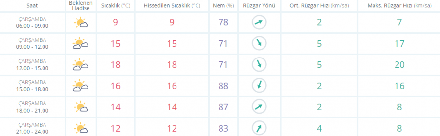 Meteoroloji Genel Müdürlüğü olarak yapılan son değerlendirmelere göre: Batı Karadeniz'in iç kesimleri, İç Anadolu'nun güney ve doğusu ile Akdeniz'in iç kesimlerinin parçalı yer yer çok bulutlu, diğer yerlerin parçalı ve az bulutlu geçeceği tahmin ediliyor. Doğu Karadeniz'in iç kesimleri ile Doğu Anadolu'nun kuzey ve doğusunda yüksek kar örtüsü bulunan yerlerde çığ tehlikesi bulunmaktadır. Marmara ile iç ve doğu kesimlerde pus ve yer yer sis hadisesi bekleniyor.