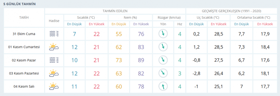 2 Kasım Pazar: Pazar günü Bursa'da özellikle sabah saatlerinde sisli bir hava olacak. Gece sıcaklığının 10 derece olması bekleniyor.