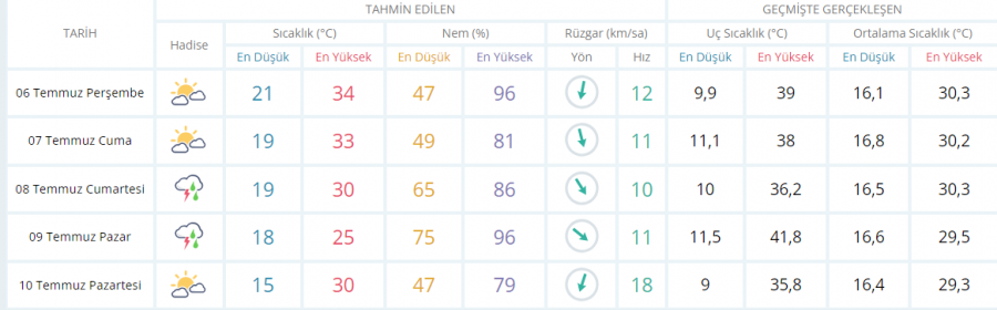 5 GÜNLÜK TAHMİNİ