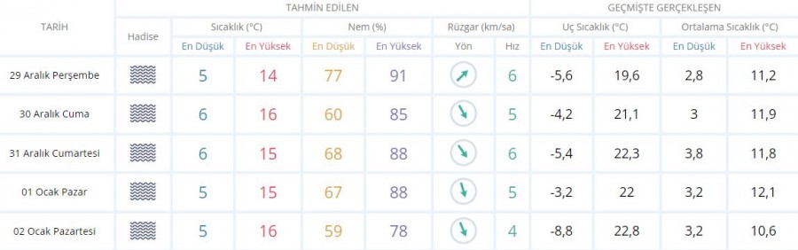 5 GÜNLÜK HAVA TAHMİNİ