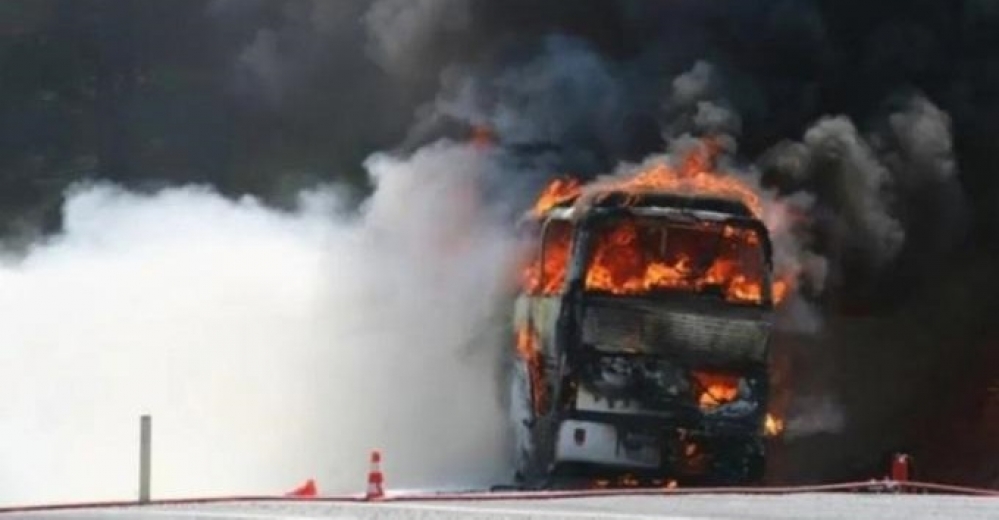 Bulgaristan'da bir otoyolda gece yarısı 02.00 sularında alev alan otobüste onlarca kişi hayatını kaybetti. Türkiye'den Balkan ülkesine giriş yapan Kuzey Makedonya plakalı aracın, Struma Otoyolu'nda seyrettiği bildiriliyor. Bulgaristan medyası, Bosnek köyü yakınlarında yol kenarındaki bariyerlere çarpan araçta yangın çıktığını aktarıyor.