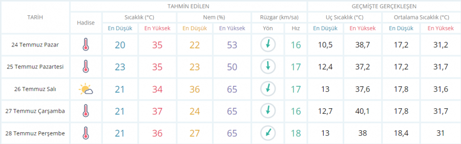 5 Günlük hava durumu